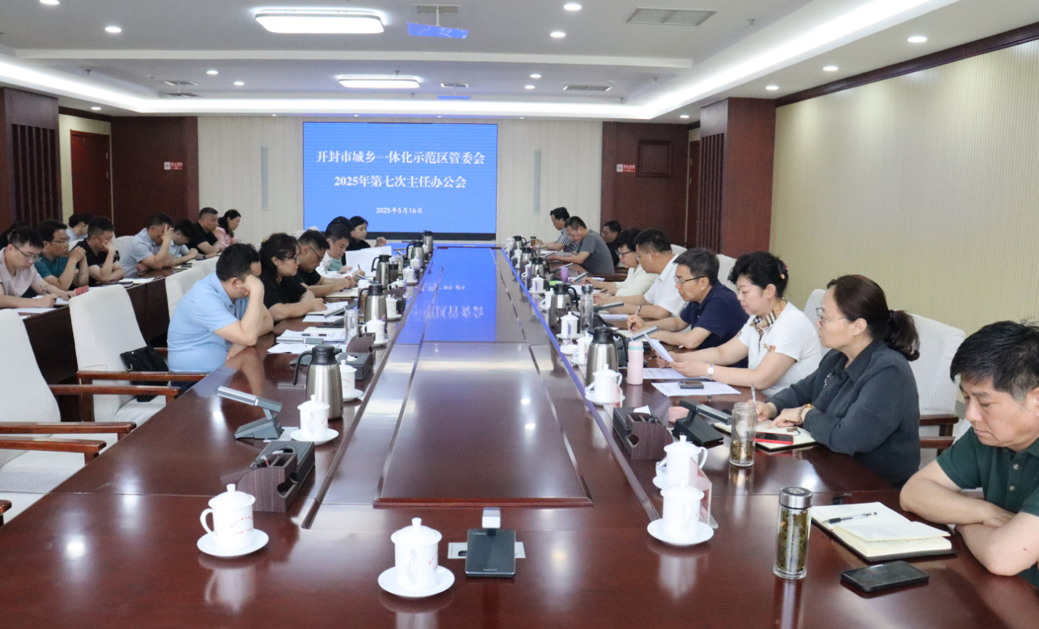 5月16日,示范区管委会2025年第七次主任办公会召开。示范区党工委副书记、管委会主任郑红英主持会议并讲话,示范区领导张利民、刘红超等出席会议,示范区相关单位部门主要负责人参加会议。