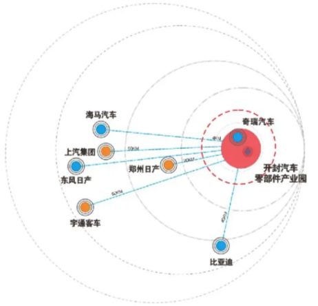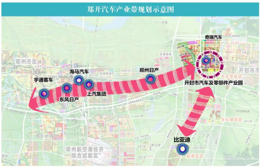 开封汽车零部件产业园为郑开汽车产业带重要一翼,为河南省政府公布的第四批省级汽车及零部件出口基地,规划面积15.2平方公里,按照“统一规划,滚动开发”的原则,谋划布局“六区六园”。围绕奇瑞、日产、上汽、宇通、海马等整车企业开展产业链招商,现园区已入驻了奇瑞汽车、住友电工、河钢集团、亚普油箱、平原非标、南京武秀等一批500强和行业龙头企业,共已入驻汽车及零部件企业近百家,形成了与郑州汽车工业差异化发展、互补配套的产业体系。