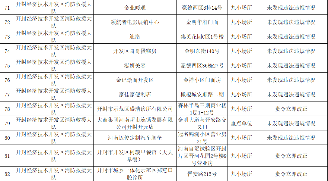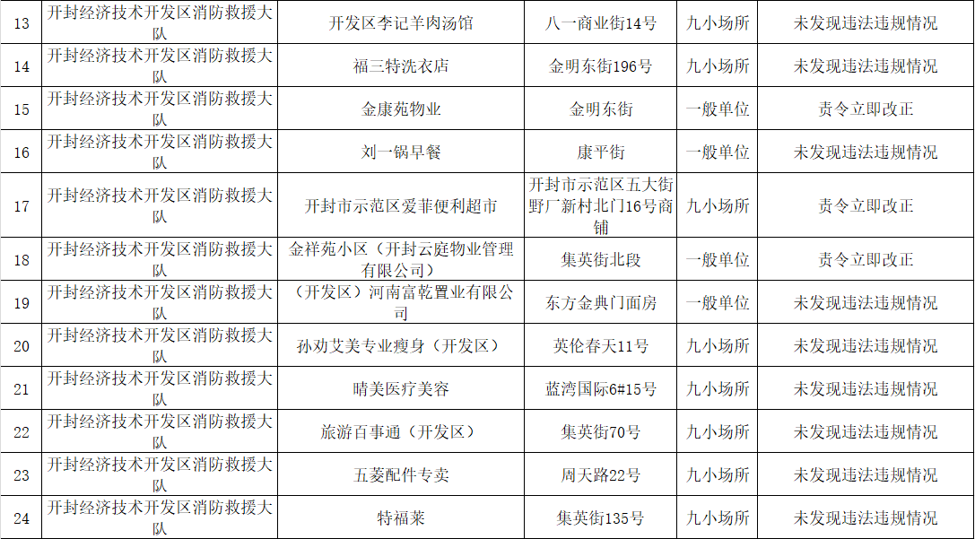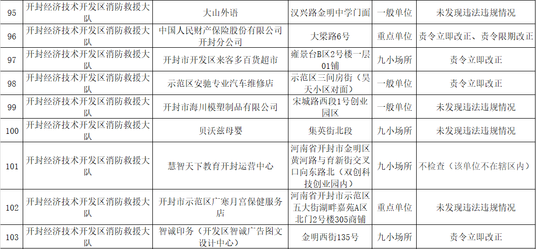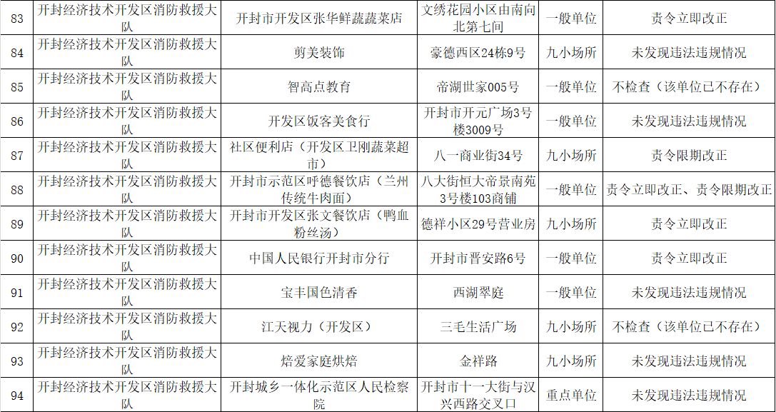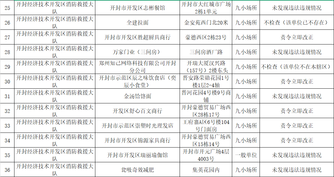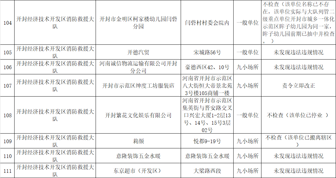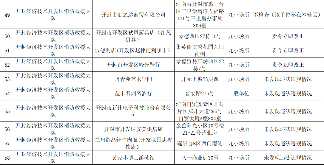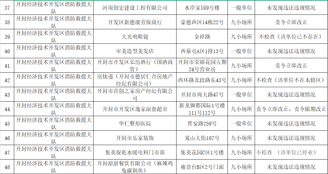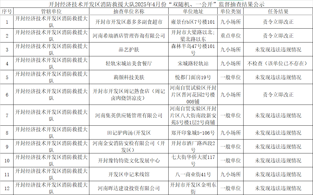 开封经济技术开发区消防救援大队2025年4月份“双随机、一公开”监督抽查结果公示