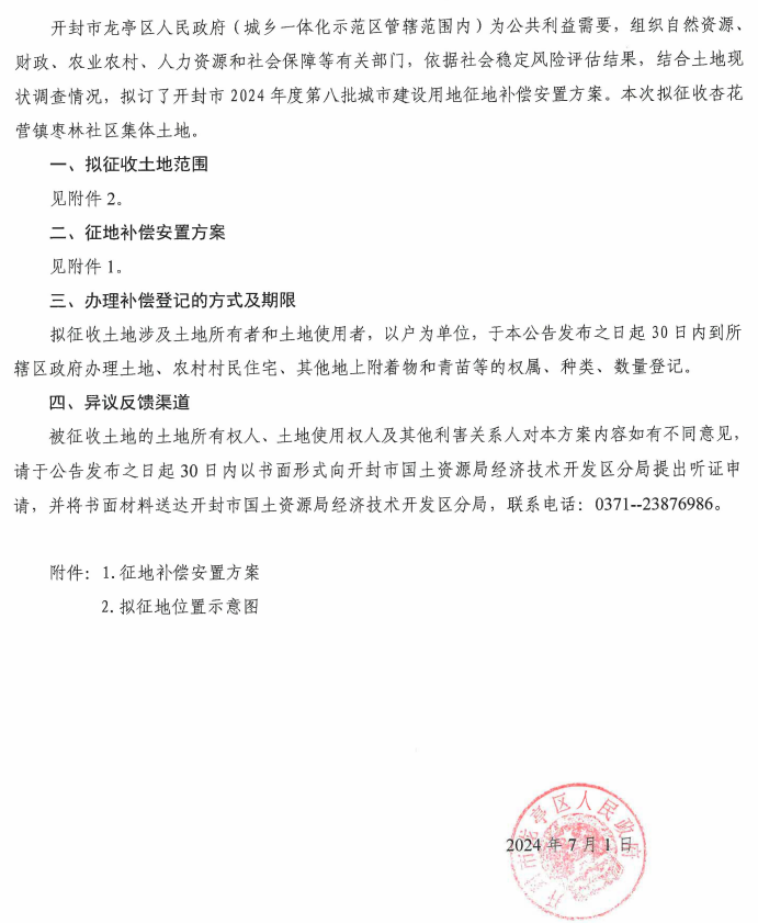 【征地补偿】开封市龙亭区人民政府(城乡一体化示范区管辖范围内)征地补偿安置公告