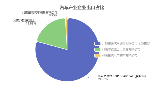 二是以民营企业为主,除奇瑞汽车外呈现多点开花态势,在全省首次实现汽车产业改装车延链补链。今年1~9月,我市汽车出口企业有5家,均为民营企业,其中出口乘用车企业主要是开封捷途汽车销售有限公司(含奇瑞),出口值91.9亿元,增长42.7%,占全市汽车及零部件出口值96.3%。我市改装车出口企业两家,分别为河南汴欧进出口贸易有限公司出口23亿元、增长5.1倍,河南星辰汽车装备有限公司出口1.1亿元。